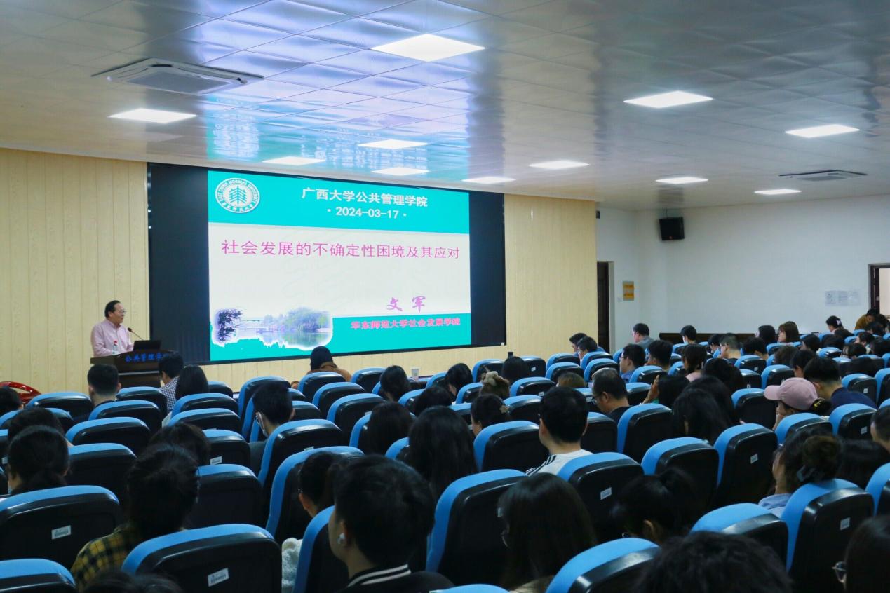 3月17日下午,华东师范大学社会发展太阳城网址 院长、上海市“中国特色的转型社会学研究”社会科学创新研究基地首席专家文军教授受邀于太阳城网址 203会议室作题为《社会发展的不确定性困境及其应对》的学术讲座,本次讲座由曾凡军副院长主持,以太阳城网址 史云贵院长、魏万青教授等为代表的教师与百余名博士、硕士研究生及本科生参与其中。