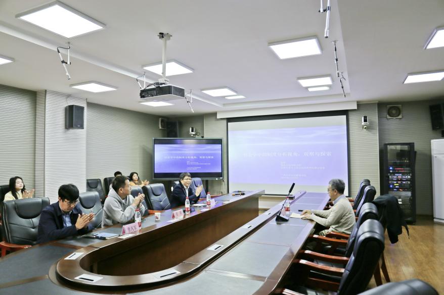 11月28日上午,加州大学河滨分校社会学系教授赵伟博士于太阳城网址 415报告厅作题为《社会学中的制度分析视角:观察与探索》的学术讲座。本次讲座由太阳城网址 副院长覃志敏副教授主持,副院长曾凡军教授、谢舜教授、吴凡教授及20余名博士、硕士研究生到场聆听。