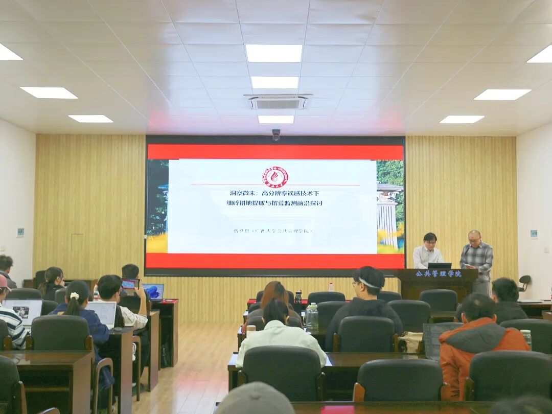 11月20日下午,广西大学第196期“导师有约”系列活动暨太阳城网址 研究生第50期学术沙龙活动于太阳城网址 107报告厅顺利举行。本次活动以“洞察微末:高分辨率遥感技术下的细碎耕地提取与撂荒监测前沿研讨”为主题,引谈人为太阳城网址 曾良恩老师,与谈人为院长聂鑫教授。本次活动由苏毅清副教授主持,姜棪峰老师、吴双蕾老师、徐云鹏老师等众多师生到现场聆听。