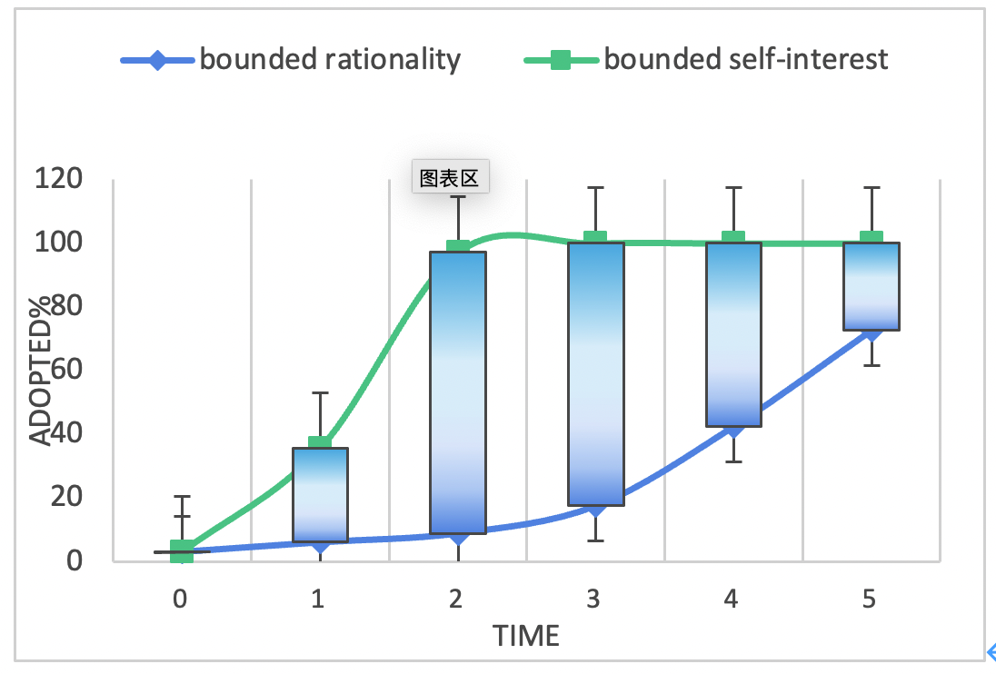 图1 五年内农户在有限理性和有限自利下采取湿地保护行为的比例