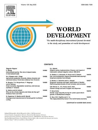 World Development (WD)(《世界发展》) 是发展研究领域国际顶级学术期刊,2023年影响因子6.9,为JCR一区,旨在向学术界、政策制定者和从业者提供关于全球发展问题的最新研究成果和观点。该杂志的范围涵盖了发展经济学、农村发展、城市发展、环境与可持续发展、贫困与不平等、教育与健康、性别与发展、全球化等领域的研究。