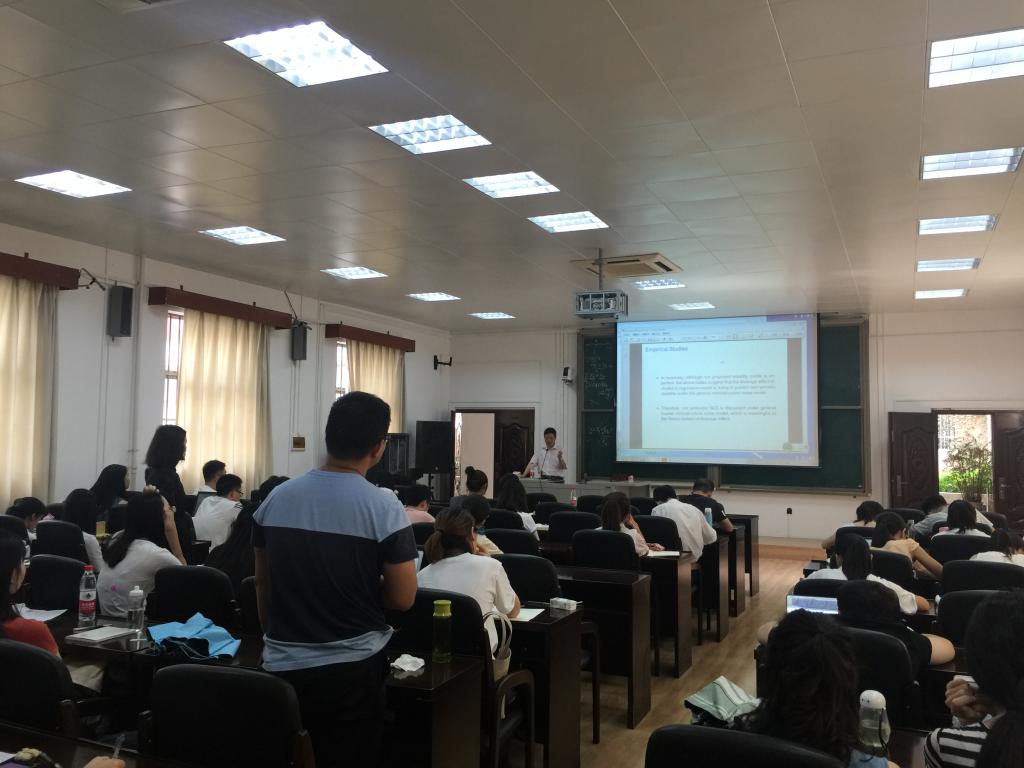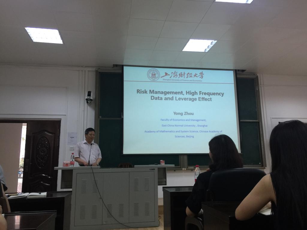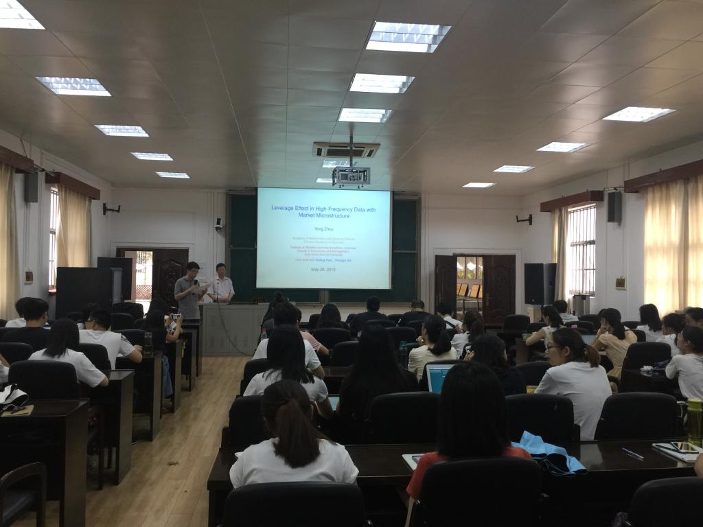 2018年5月28日上午九点,太阳城网址 荣幸邀请国家杰出青年基金获得者、国务院政府特殊津贴专家、上海财经大学统计与管理太阳城网址 周勇教授来太阳城网址 做学术报告,为我们讲解风险管理及高频数据杠杆效应,公管太阳城网址 聂鑫教授、数信太阳城网址 刘芳教授一同参加此次讲座,并吸引各太阳城网址 研究生前来。