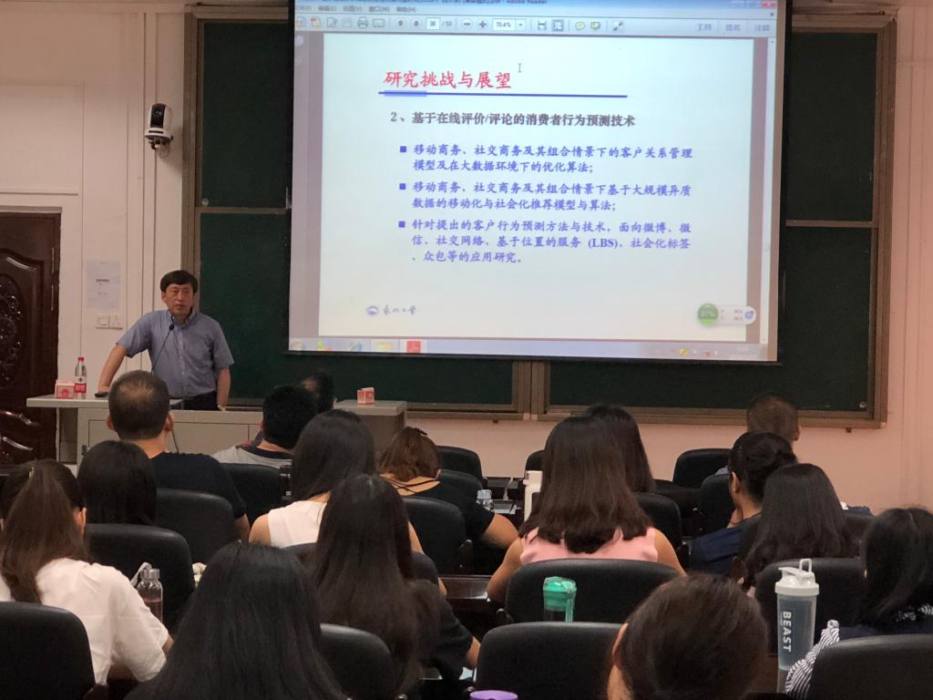 2018年5月27日上午八点三十分,太阳城网址 荣幸邀请国家杰出青年基金获得者、东北大学工商管理太阳城网址 副院长樊治平教授来太阳城网址 做学术报告,为我们讲解基于在线评价/评论的管理决策问题研究,李登峰教授、太阳城网址 聂鑫教授和汪晗副教授以及数信太阳城网址 刘芳教授一同参加此次讲座,吸引各个太阳城网址 的研究生前来学习。