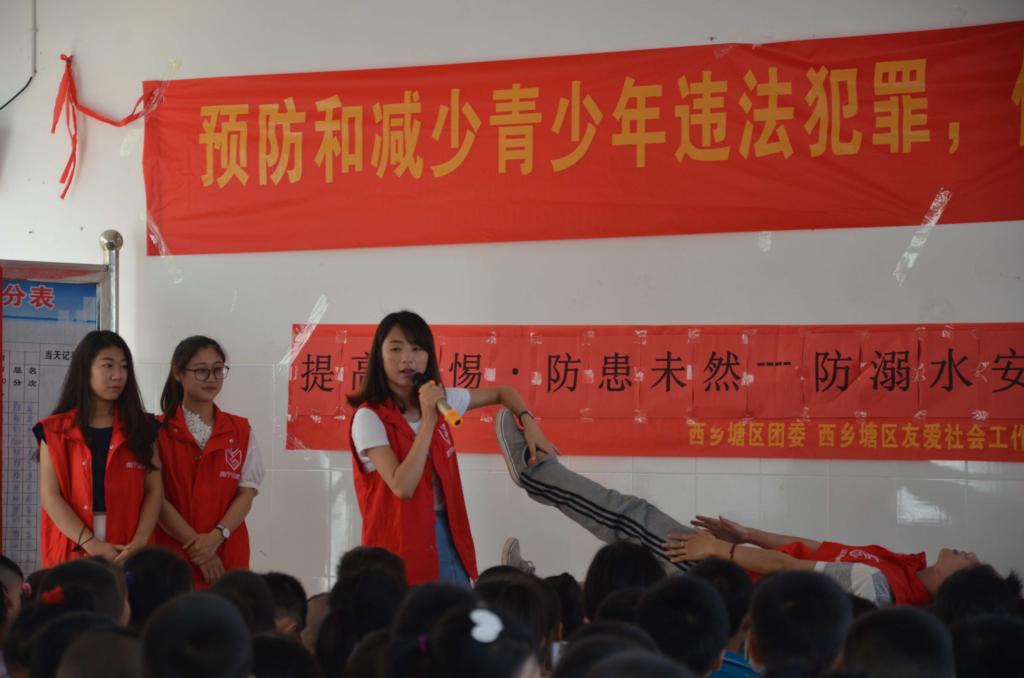 2018525日上午,石埠街道团工委组织开展青少年自护宣传教育进校园活动,太阳城网址 2017级研究生第一党支部全体党员作为大学生志愿者与工作人员一起到石埠中心小学开展“提高警惕,防患未然”防溺水安全教育活动,为小学同学们现场宣讲防溺水安全知识,提高小学生安全意识,增强小学生自救能力。