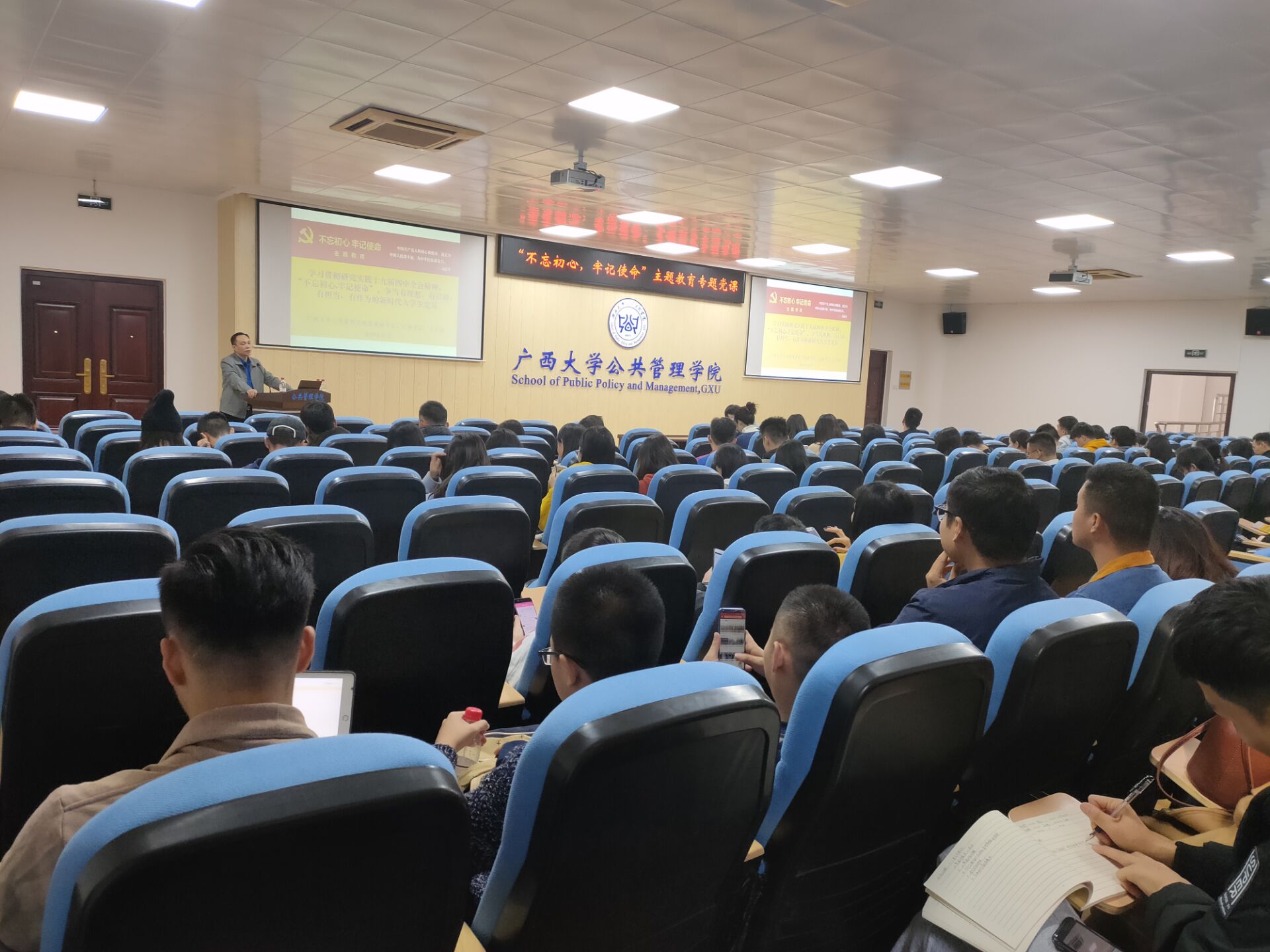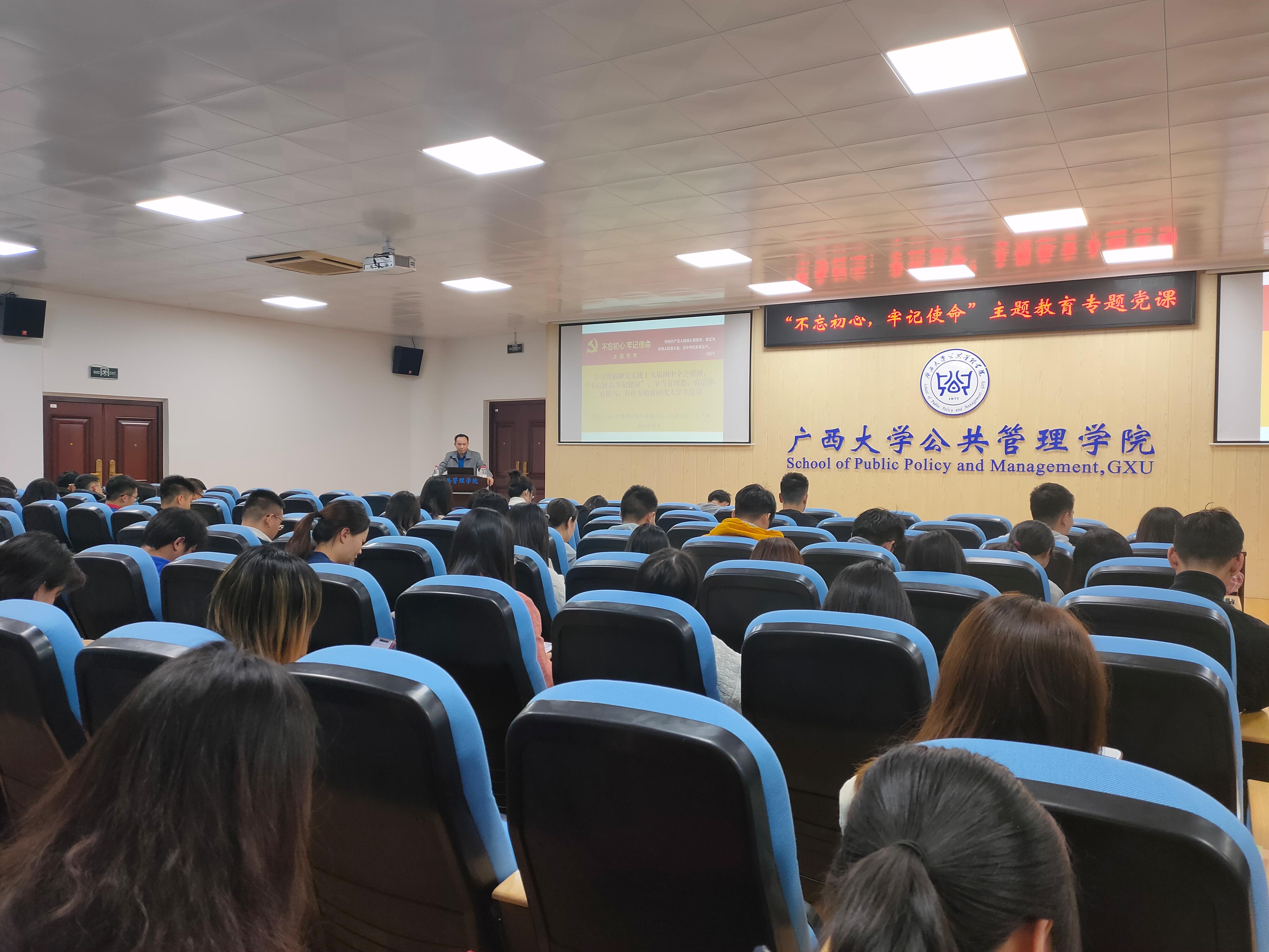 11月29日,太阳城网址 开展“不忘初心、牢记使命”主题教育专题党课,太阳城网址 党委副书记、纪委书记甘武琳以“学习贯彻研究实践党的十九届四中全会精神,“不忘初心、牢记使命”,争当有理想、有信仰、有担当、有作为的新时代大学生党员”为题讲授专题党课。全院预备党员、本科生支部党员和研究生支部党员出席党课。