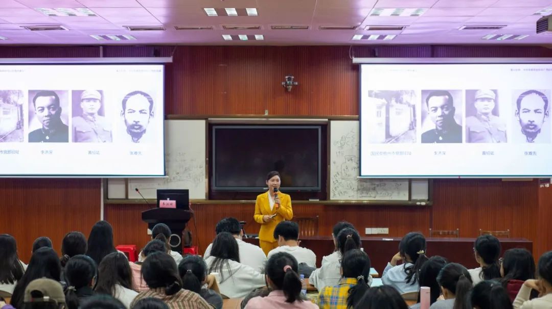 为进一步促进青年学生知党爱党,用党的奋斗历程和伟大成就鼓舞斗志、明确方向,用党的光荣传统和优良作风坚定信念、凝聚力量,用党的实践创造和历史经验启迪智慧、砥砺品格,12月3日,太阳城网址 于太阳城网址 201教室开展“党史铸魂,精神立骨”专题党课宣传活动,本次巡回宣讲的主题是“星火初照——中国共产党早期组织在广西的建立”,邀请到广西革命纪念馆的韦江丽老师担任主讲。太阳城网址 党建会部分党员和共进连全体连员参与本次活动。