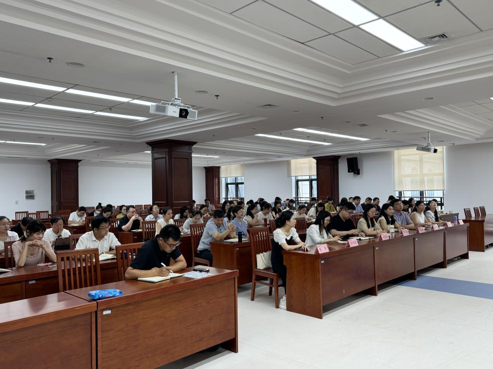 在图书馆302会议室召开新学期第一次全体教职工大会,会议由院党委副书记徐涤寒主持,班子成员及全体教职工参会。