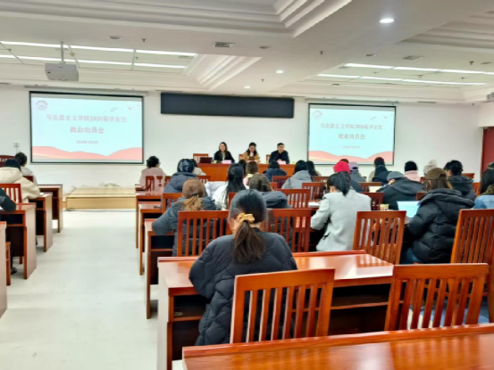 在图书馆302会议室举办2026届毕业生就业创业动员会。院党委副书记王凤云、副院长马凯、院团总支书记陈曦冉及全体2026届毕业生参加会议。会议由陈曦冉主持。