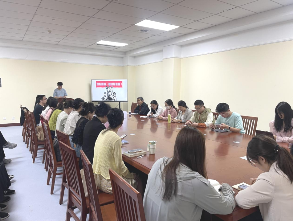 李秋潭以“大兴调查研究之风”为主题,从为何大兴调查研究之风导入,围绕其科学内涵、生成背景、特征与意义几个方面进行详细阐述。随后,李秋潭结合主题教育学习《习近平总书记关于调查研究的重要论述摘编》中的感悟,从调查研究的历史逻辑、理论逻辑和现实依据三个方面出发,阐述了深刻认识调查研究的极端重要性、深刻理解调查研究的系统关联性、深刻把握调查研究的科学实效性,进而推动调查研究工作得以真正贯彻落实。会上,青年马克思主义研究会成员进行积极发言提问,共同探索讨论。
