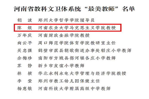 下一条:陈娱教授获河南省教科文卫体系统“最美教师”称号