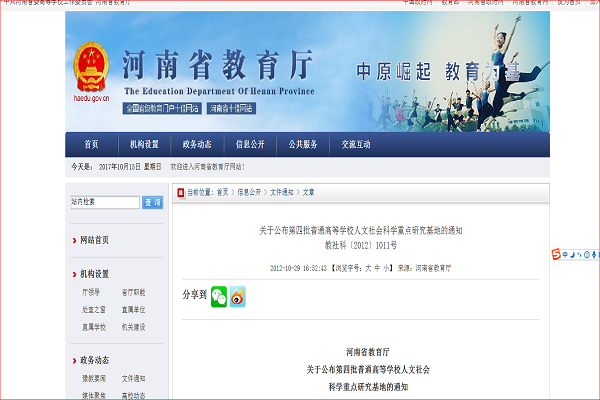 下一条:省教育厅批准我中心为省高校人文社科重点建设基地培育基地