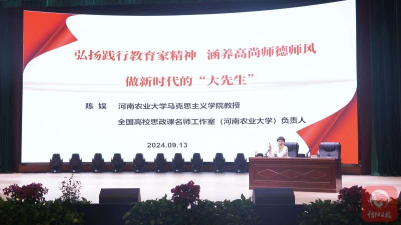 教授陈娱作了题为《弘扬践行教育家精神 涵养高尚师德师风 做新时代的“大先生”》的报告。师生代表共百余人聆听报告。