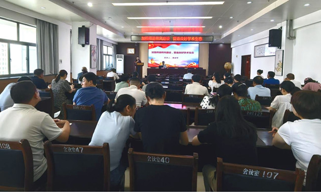 郑州果树研究所作师德师风专题报告,研究生指导教师参会,副所长韩姝主持报告会。